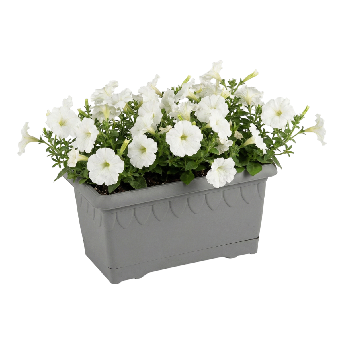 DAMLA BALKON SAKSI 1 NO - Antrasit: Serinova üretimi saksı varyantıdır. Teknik: Ölçü: 310X180X155 mm | Hacim: 5,3 L | Koli içi adet: 30 Not: Ölçü ve hacim değerleri üretici datasına göre listelenmiştir.