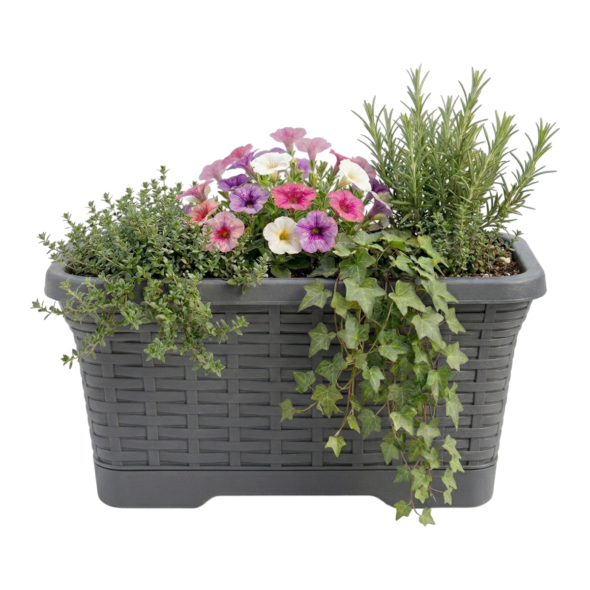 Teknik bilgi: Ölçü ve hacim değerleri varyanta göre değiHASIR BALKON SAKSI 1 NO - Antrasit: Serinova üretimi saksı varyantıdır.