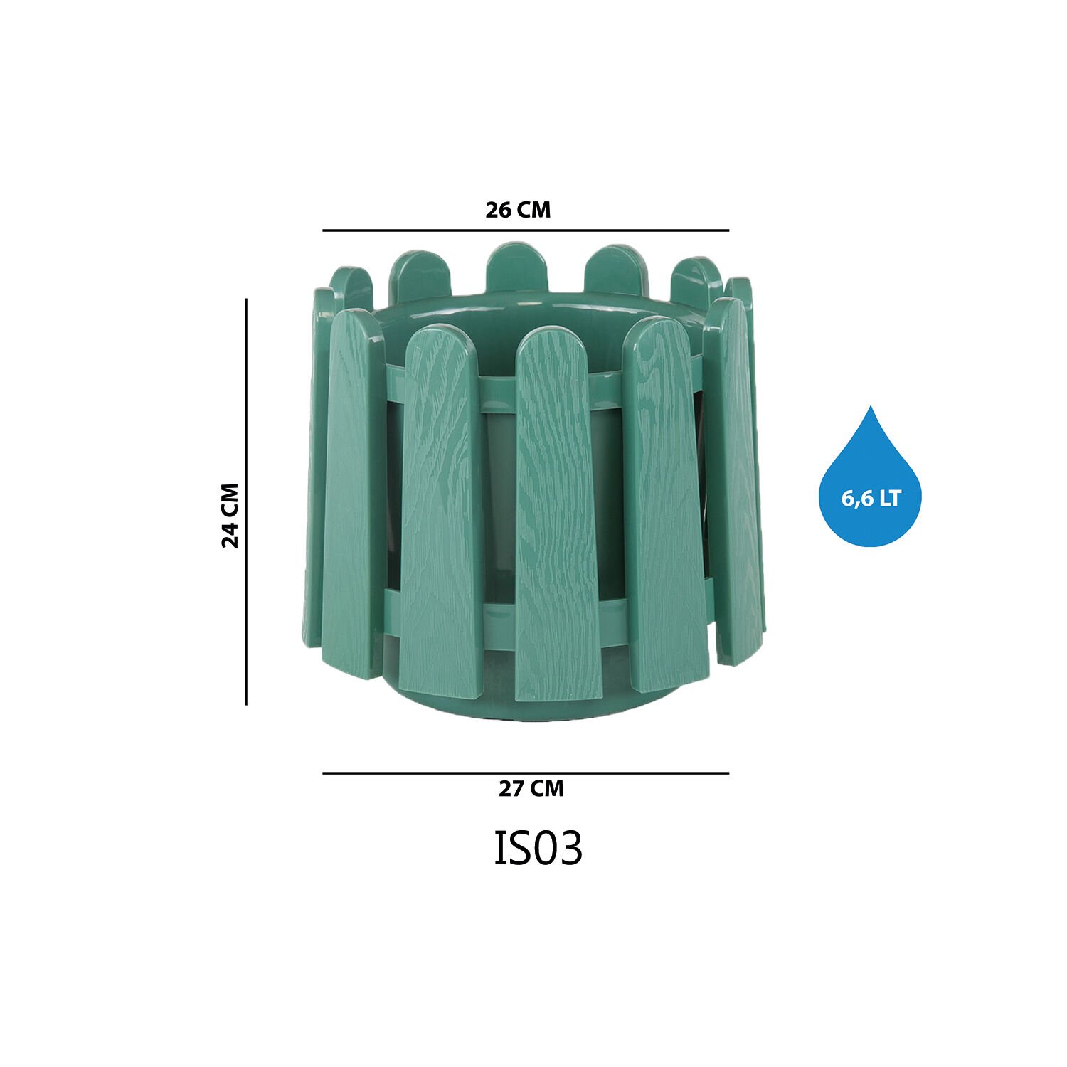 Teknik bilgi: Ölçü ve hacim değerleri varyanta göre değişir; koliİSTANBUL SAKSI 3 NO - Yeni Yeşil: Serinova üretimi saksı varyantıdır.