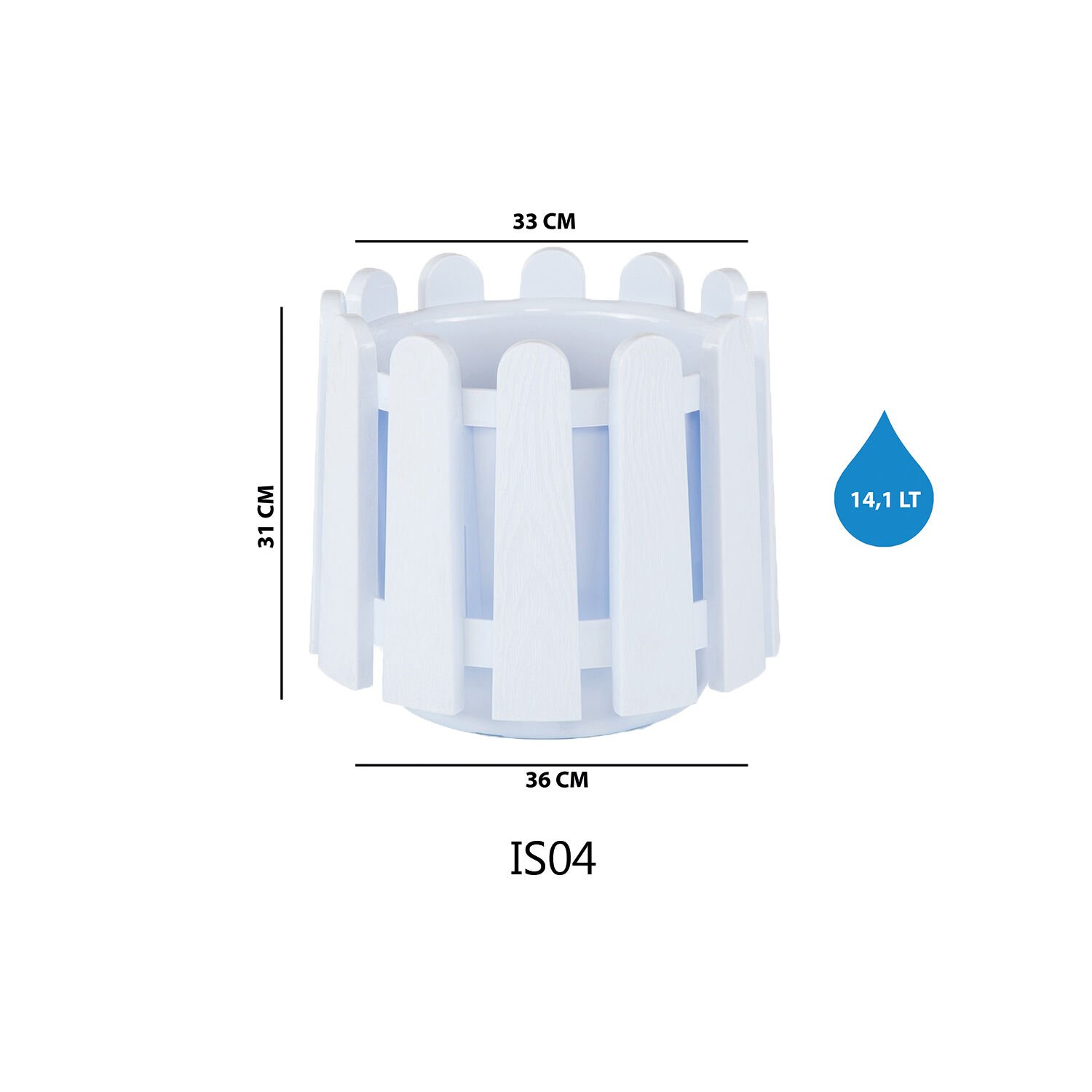 Teknik bilgi: Ölçü ve hacim değerleri varyanta göre değişir; koliİSTANBUL SAKSI 4 NO - Beyaz: Serinova üretimi saksı varyantıdır.