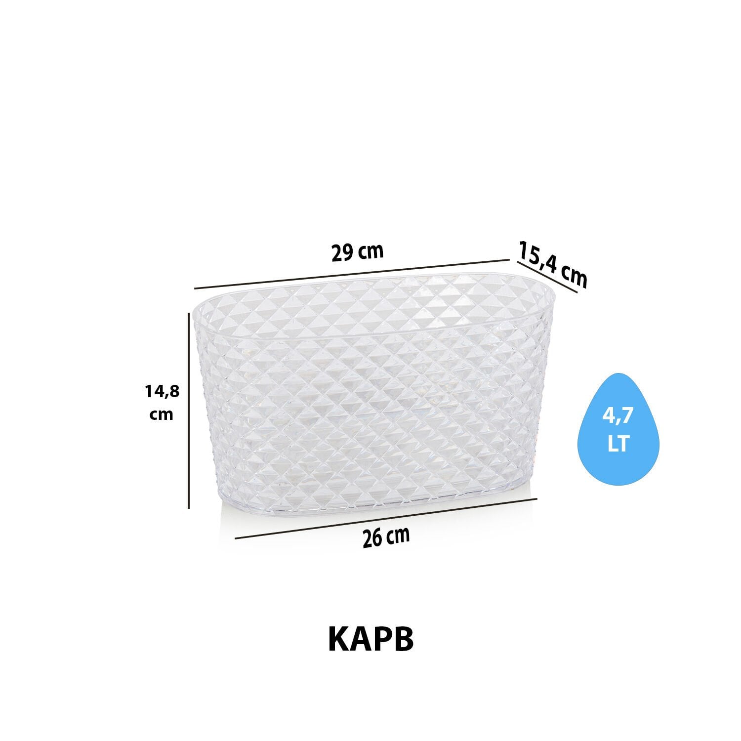 KAPADOKYA BALKON SAKSI KRİSTAL - Şeffaf: Serinova üretimi saksı varyantıdır. Teknik: Ölçü: 290X154X148 mm | Hacim: 4,7 L | Koli içi adet: 12 Not: Ölçü ve hacim değerleri üretici datasına göre listelenmiştir.