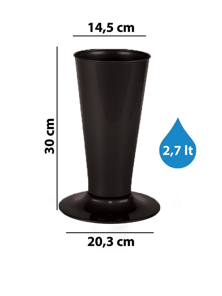 Teknik bilgi: Ölçü ve hacim değerleri varyanta göre değişir; koli içi adetKONİK KESME ÇİÇEK VAZOSU 2 - Siyah: Serinova üretimi vazo varyantıdır.