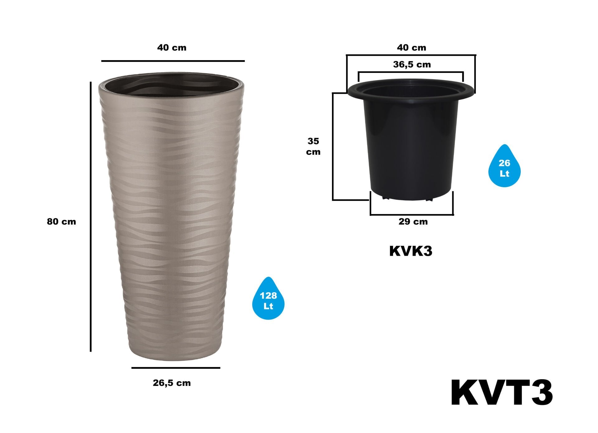 Teknik: Ölçü: 400X790 mm | Hacim: 128 L | Koli içi adet: 1
