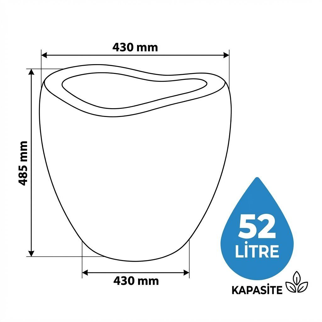 Lale Saksı, modern formu ve geniş hacmi sayesinde hem iç hem de dış mekân bitkileri için ideal bir kullanım sunar. 52 litre kapasitesi sayesinde büyük bitkilerin sağlıklı gelişimine alan sağlar.