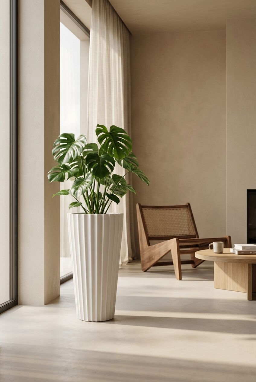 70 cm yüksekliği ve geniş ağız çapı sayesinde hem hacimli bitkiler hem de dekoratif ağaçlar için ideal kullanım sunar. Mekânda yalnızca bir saksı değil, doğrudan bir tasarım objesi gibi konumlanır.