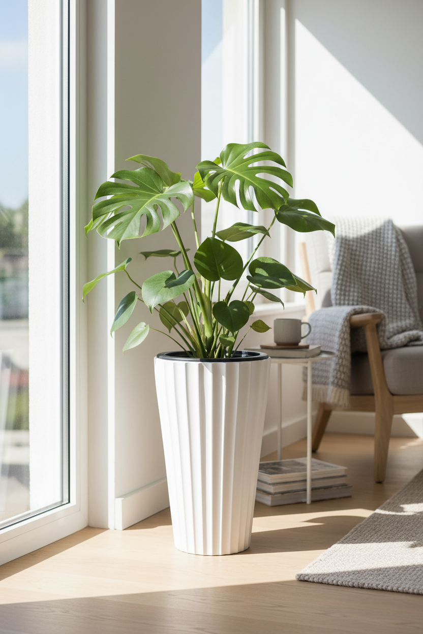 Daha güçlü bir etki, daha iddialı bir duruş. Lilyum Vazo Saksı 2 No, geniş hacmi ve yüksek formu ile büyük bitkiler için tasarlanmış premium bir dekorasyon ürünüdür.