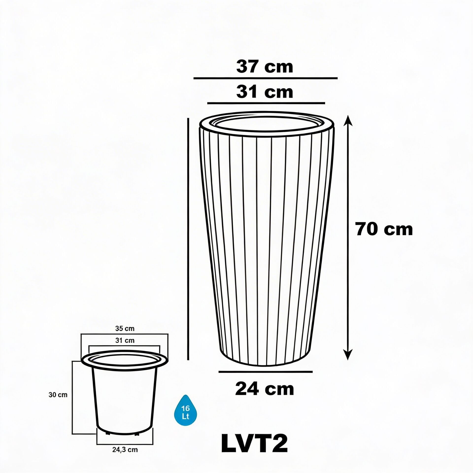 Daha güçlü bir etki, daha iddialı bir duruş. Lilyum Vazo Saksı 2 No, geniş hacmi ve yüksek formu ile büyük bitkiler için tasarlanmış premium bir dekorasyon ürünüdür.