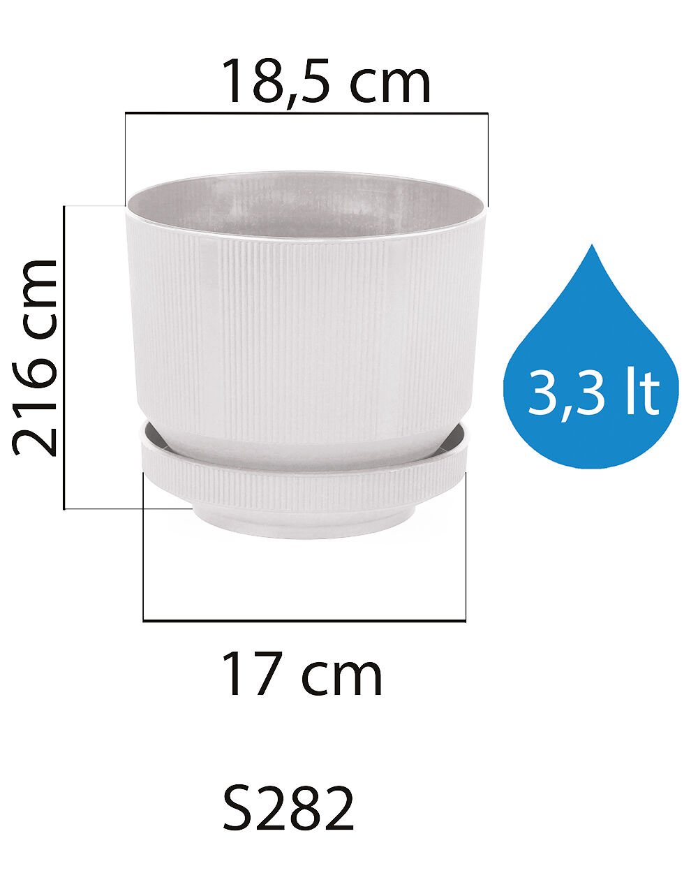 Teknik bilgi: Ölçü ve hacim değerleri varyanta göre değişir; koli içiLÜKS SAKSI 2 NO - Taş Beyaz: Serinova üretimi saksı varyantıdır.