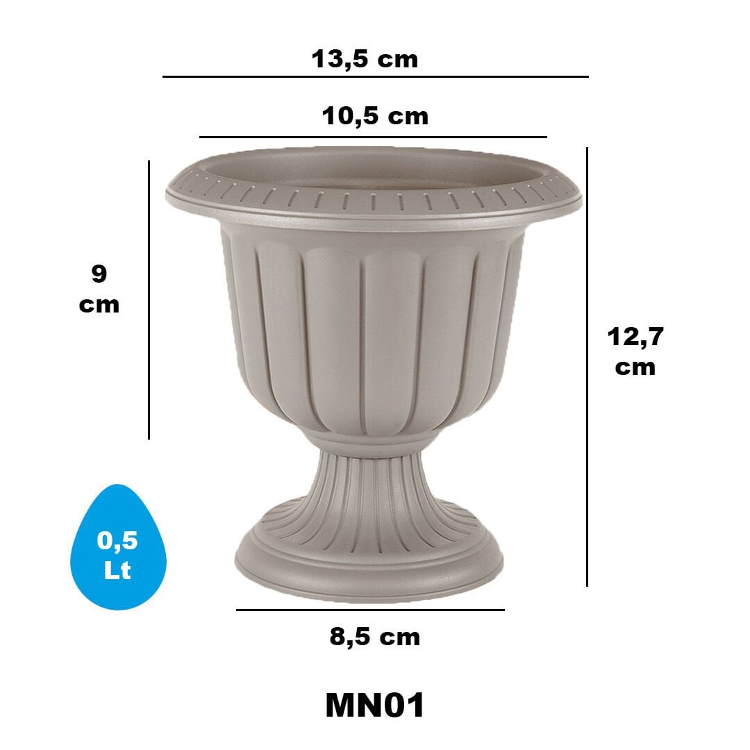 Teknik bilgi: Ölçü ve hacim değerleri varyanta göre değişirMİNİ NERGİZ SAKSI 1 NO - Mocha: Serinova üretimi saksı varyantıdır. Teknik: Ölçü: 130X127 mm | Hacim: 0,5 L | Koli içi adet: 24 Not: Ölçü ve hacim değerleri üretici datasına göre listelenmiştir.