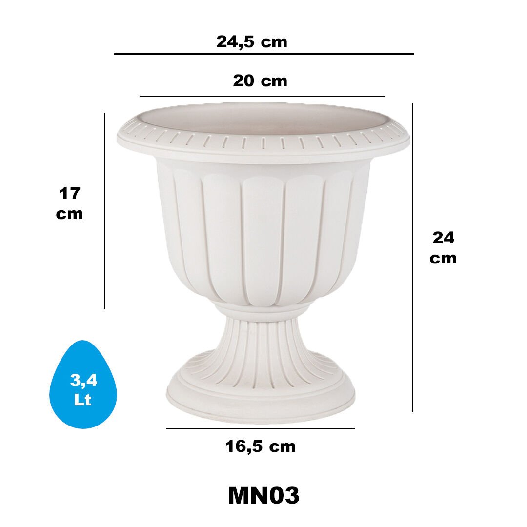 Teknik bilgi: Ölçü ve hacim değerleri varyanta göre değişirMİNİ NERGİZ SAKSI 3 NO - Kirli Beyaz: Serinova üretimi saksı varyantıdır.