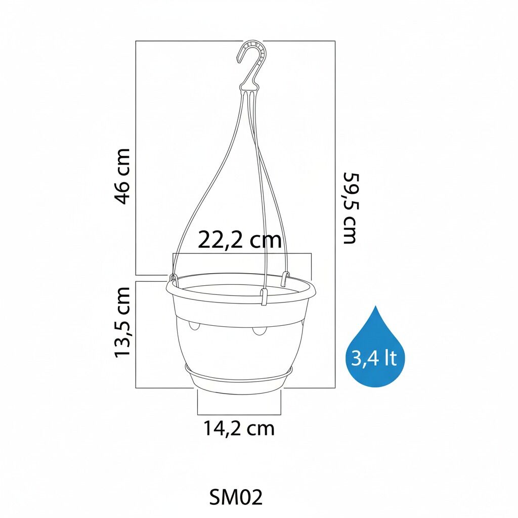 Teknik bilgi: Ölçü ve hacim değerleri varyanta göre deSAFİR MAKROME ASKILI SAKSI 2 NO - Vişne: Serinova üretimi saksı varyantıdır.