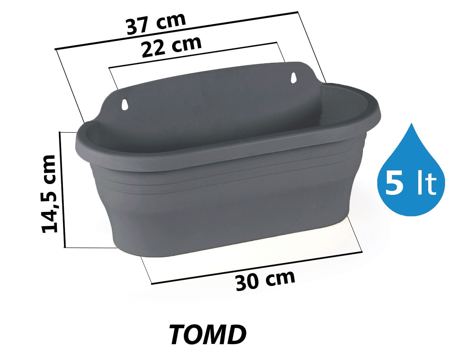 Teknik bilgi: Ölçü ve hacim değerleri varyanta göre değişir; koli içi adet bilgisi paketleme planlaması iTOMBİK DUVAR SAKSI - Antrasit: Serinova üretimi saksı varyantıdır.