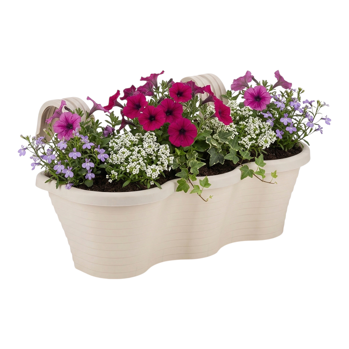 Serinova üretimi tombik form plastik saksı; balkon, bahçe ve iç mekân kullanımına uygun bir seçenektir. Modern kirli beyaz rengi ile şık bir görünüm sunar.