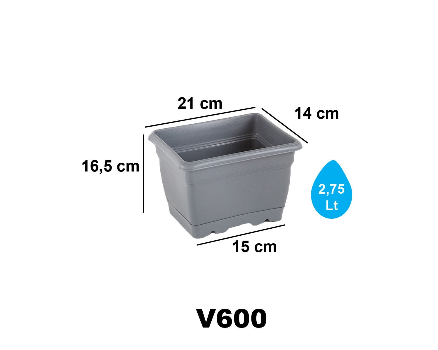 Teknik bilgi: Ölçü ve hacim değerleri varyanta göre değiVİLLA BALKON SAKSI 0 NO - Antrasit: Serinova üretimi saksı varyantıdır.