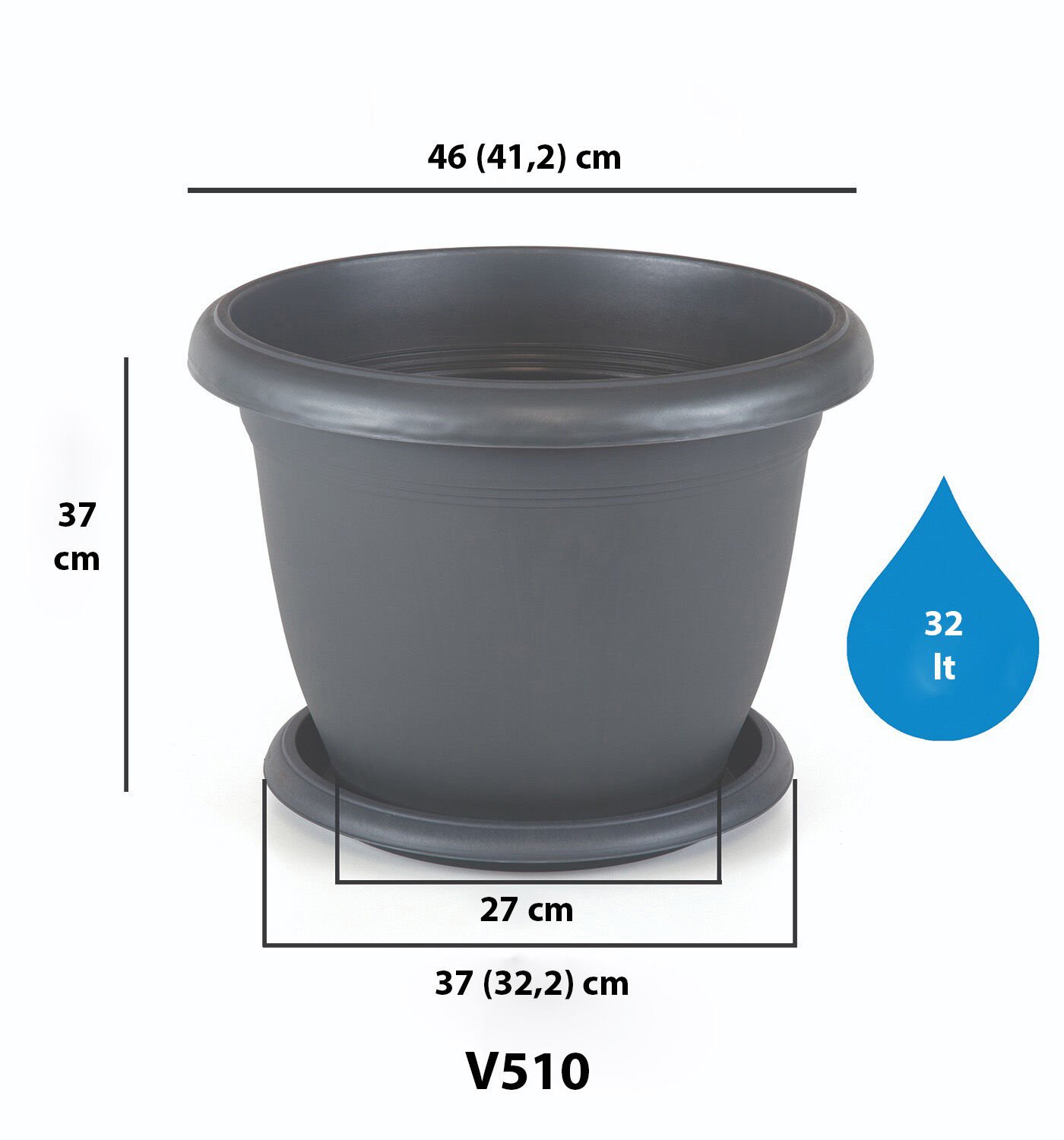 Teknik bilgi: Ölçü ve hacim değerleriVİLLA SAKSI 10 NO - Antrasit: Serinova üretimi saksı varyantıdır. Teknik: Ölçü: 480X360 mm | Hacim: 32 L | Koli içi adet: 10 Not: Ölçü ve hacim değerleri üretici datasına göre listelenmiştir.