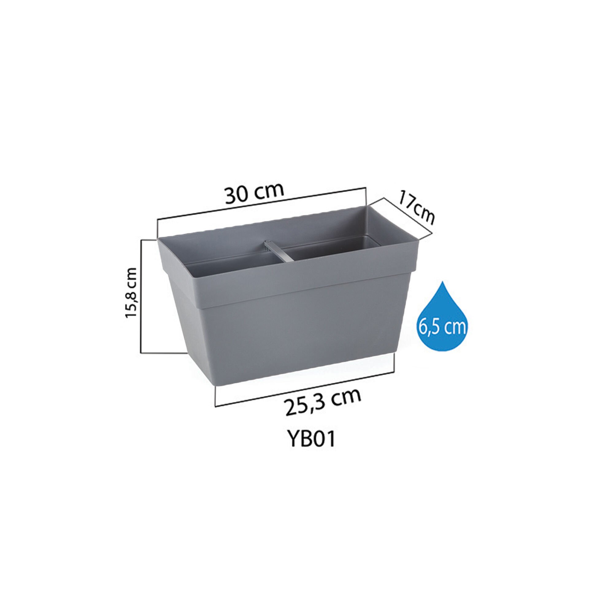 YALI BALKON SAKSI serisi; pratik kullanım ve düzenli form odağında tasarlanmış saksı ürün ailesidir. Seçenekler: Boy seçenekleri: 1 NO, 2 NO | Renk seçenekleri: Kirli Beyaz, Mocha, Antrasit Teknik bilgi: Ölçü ve hacim değerleri varyanta göre değişir; kolYALI BALKON SAKSI 1 NO - Antrasit: Serinova üretimi saksı varyantıdır.