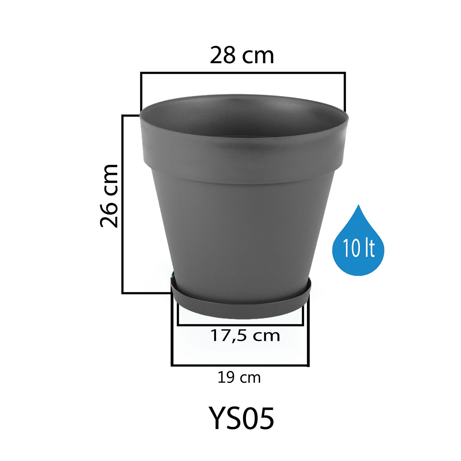 Yalı Saksı Tabaklı 5 NO - Antrasit