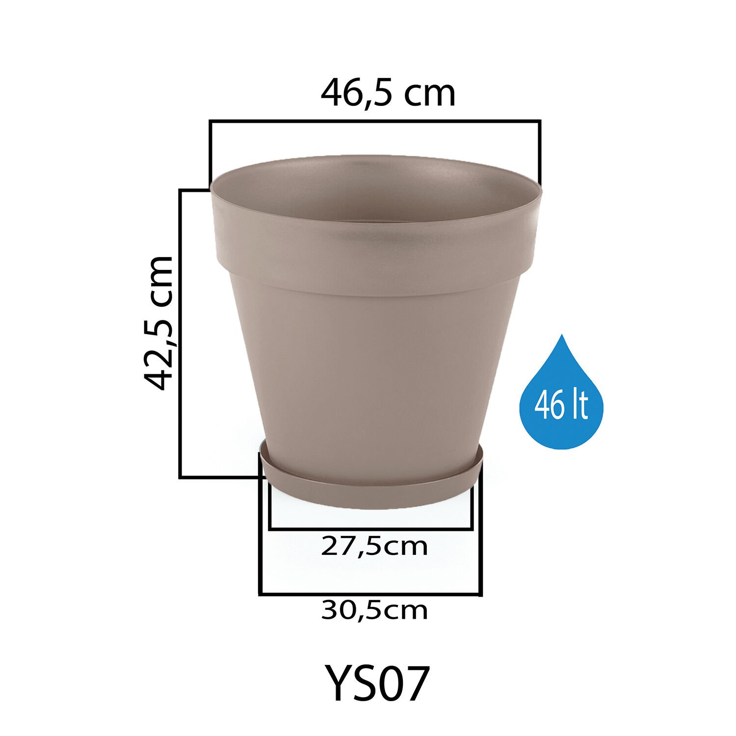 Teknik bilgi: Ölçü vYALI SAKSI TABAKLI 7 NO - Mocha: Serinova üretimi saksı tabağı varyantıdır.