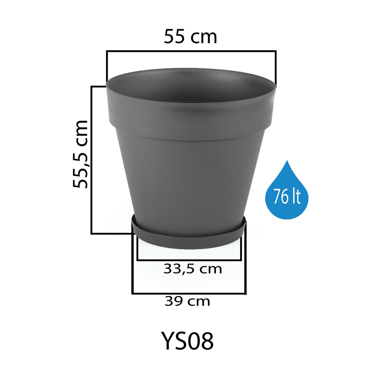 Yalı Saksı Tabaklı 8 NO - Antrasit